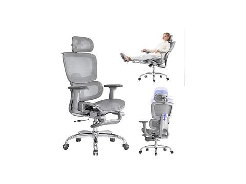 LarkLeaves Cadeira Ergonômica Gamer Executiva Mesh Cinza com Descanso para os Pés e Apoio 3D