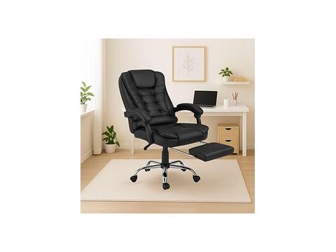 Luvinco Cadeira de Escritório Itália Presidente Ergonômica Couro Sintético Preta