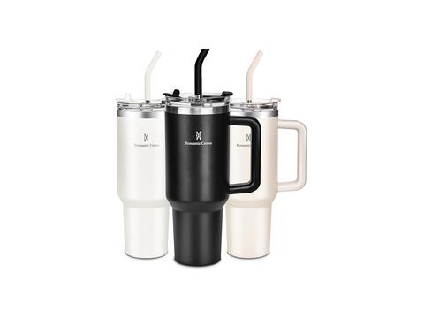 Romantic Crown Copo Térmico com Canudo 1,18L Preto Aço Inoxidável